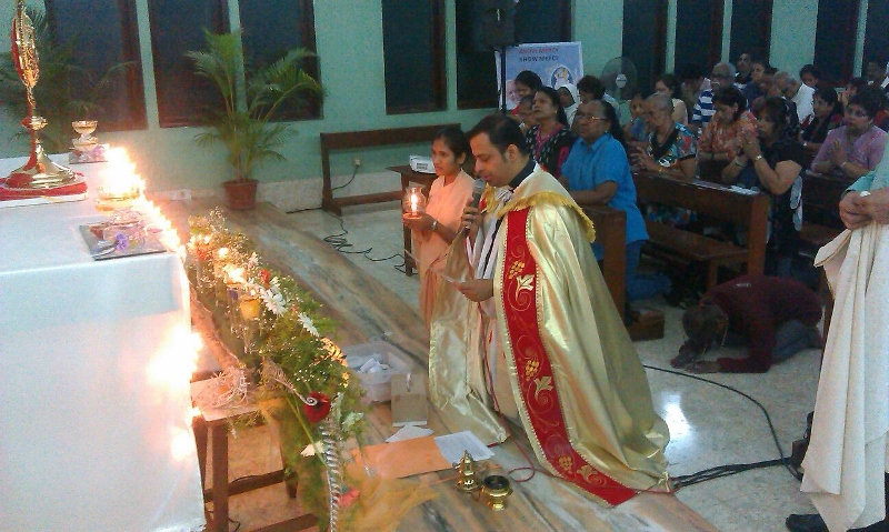 In response to the invitation of the Holy Father Pope Francis, on the Jubilee Year of Mercy and according to the Guidelines issued by Most Rev. Cardinal Oswald Gracias, Prarthanlaya, had organized a 48 Hours of Eucharistic Adoration invoking the mercy of God upon the whole world. It was indeed a beautiful and spirit filled experience for all, as people from all walks of life,came to experience the Merciful Savior, some came as individuals, some in groups, SSP, DSP and other religious communities of Bandra took part in the adoration. On the last day the night vigil was carried out by Sanctuary intercessors, and it concluded with the solemn Eucharistic celebration presided by Rev. Fr. Byron, Our Lady of Assumption Church, Kandivili. The prayerful atmosphere encouraged all to be in greater communion with the Eucharistic Master. May all continue to celebrate God’s mercy, all throughout this jubilee year.