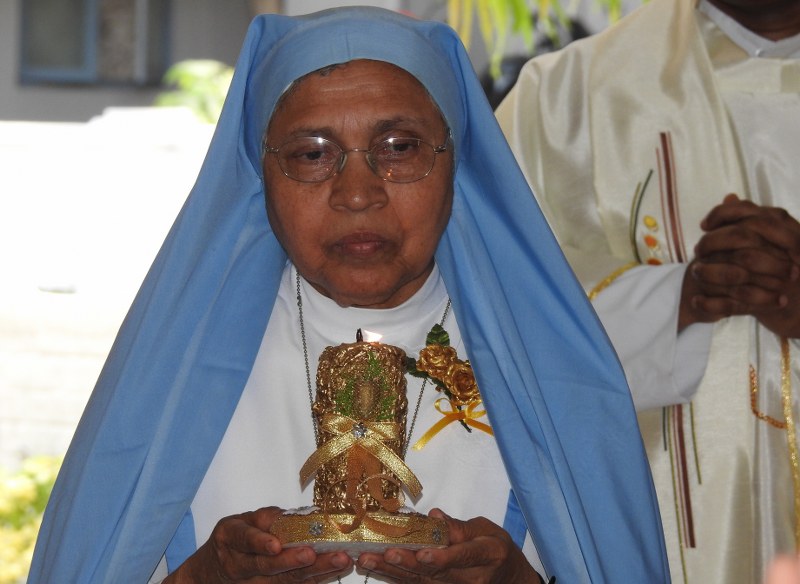 At very young age, called by the Lord to a labourer in his vineyard, she willingly let go everything that was dear to her including the county and the people that she loved. Sailed to unknown horizons, with no doubts, and walked through rough and smooth paths without fear. She trusted in the Lord saying “The Lord is my shepherd, there is nothing I shall want”. The missionary spirit that she carried with much love and enthusiasm, enabled her to be part of any culture and people to live and give Jesus. The passionate Spirit moved in her to flow with glow. Sister from different communities, two of her sisters Sr. M. Speranza Cornelio & Sr. M.  Stella Cornelio who are Pious Disciples and her family members participated in the celebration.  The India province congratulates her on this occasion of her Golden Jubilee and wish her success in all her under takings.