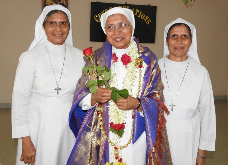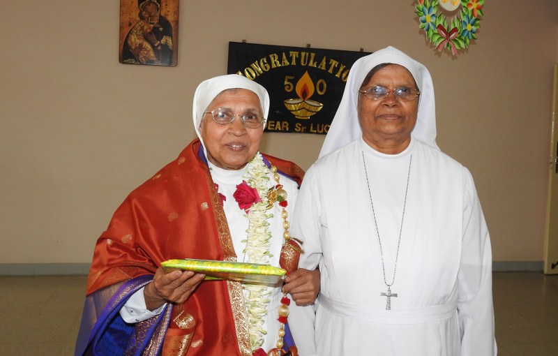 On 3rd April at the eve of the birth anniversary of our beloved founder Bl. James Albertine, the Indian province proudly celebrated the Golden Jubilee of Sr. M. Luce Cornelio, a shining and memorable moment for her fifty years of consecrated life. The celebration began with a well prepared Liturgy accompanied by melodious hymns and dancers. Fr. Anil D’ Mellow SJ, the main celebrant for the occasion spoke on the faith and toil which are two strong pillars of religious life and congratulated her for her selfless and generous service to the entire congregation.