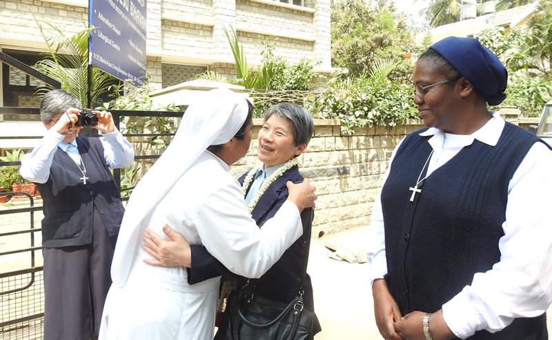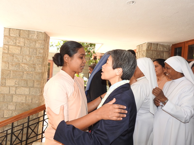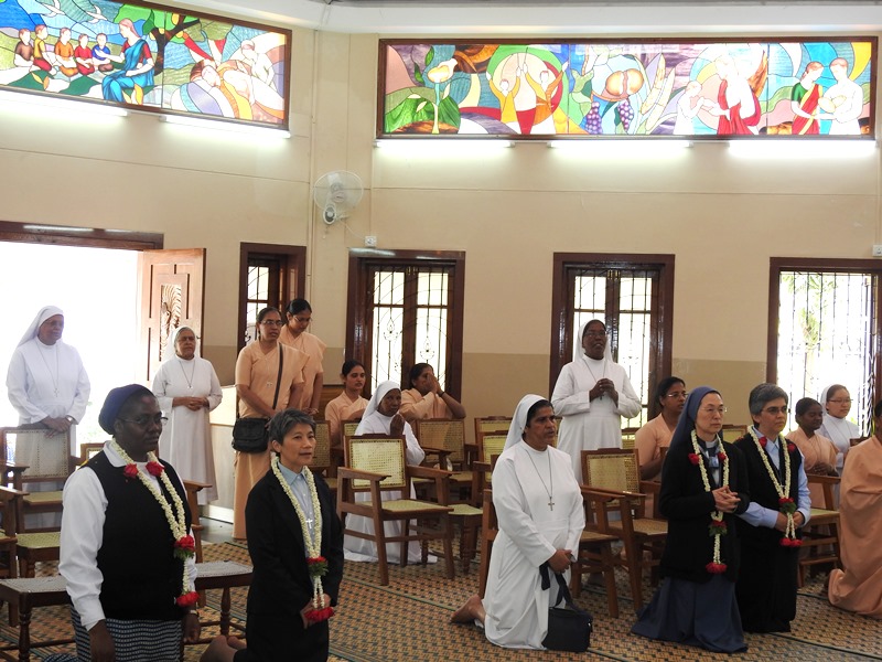 Then, they were led to the Chapel for a brief moment of prayer. The community is composed of: Provincial Government, Sisters, seniors as well as juniors and Candidates of the Indian Province.