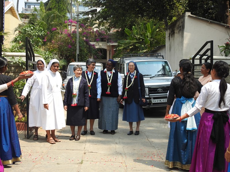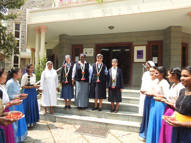 On 10th March 2018 the PDDM Community of Guru Yesu Bhavan, Bangalore had the privilege to welcome our General Councillors from Rome. Sr Lidia Awoki, Sr Giovanna Uchino, Sr Clementine Kazadi and, Sr Maria Del Refugio Saldate were thrilled with joy over the Welcome they received.