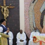 The solemn Eucharistic Celebration was presided over by Rev. Fr Christy Raj Isaac, the Parish Priest of St Patrick’s Church, Bangalore. Fr Sajith Syriac SSP encouraged the sisters with his inspiring Homily, where he stressed on the seriousness of lifelong commitment and the grace and power of God that sustains and animates one’s entire life especially in the face of trials. He emphasized saying we are earthen vessels that contain the precious treasure ‘JESUS’. God works through our fragility and woundedness to be His witnesses and collaborators by His constant presence and guidance. Therefore, the total self-giving of these nine vibrant and young sisters is a cause of joy to our PDDM family.