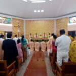 The Eucharistic celebration was officiated by His Grace Bernard Mores the Archbishop Emeritus of Bangalore and the Administrator of the diocese of Mysore. The Pauline and the Jesuit priests concelebrated in the Eucharist. The other members of the Pauline Family along with the families and friends of the sisters were present.