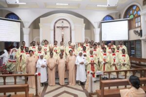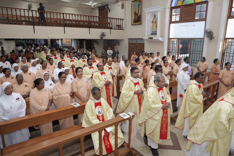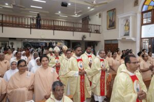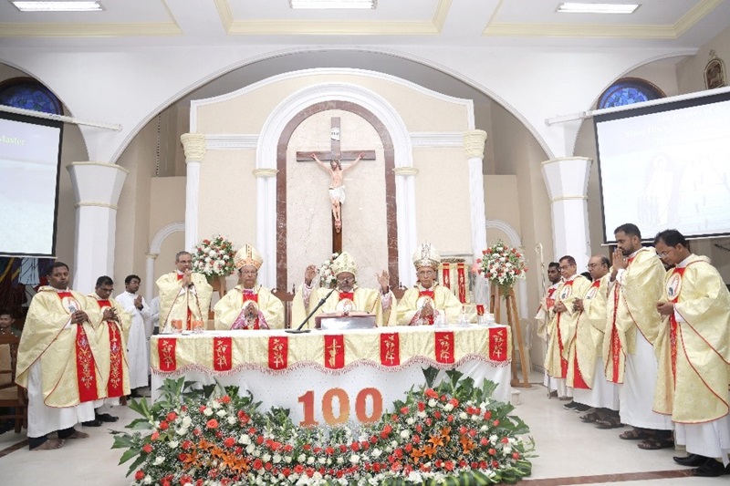 PDDM-INDIA: The historic event of the centenary of our foundation was celebrated in Bangalore, on February 10, 2024. The day was filled with gratitude and joy as Most Rev. Peter Machado, Metropolitan Archbishop of Bangalore, presided over the solemn Eucharist, joined by Most Rev. Bernard Moras, Archbishop Emeritus of Bangalore and Apostolic Administrator of Mysore, Most Rev. Thomas Anthony Vazhapilly, Bishop Emeritus of Mysore, Fr. Joby Manachirikkal Provincial Superior of the Society of St. Paul, along with many other Pauline, religious and diocesan priests.