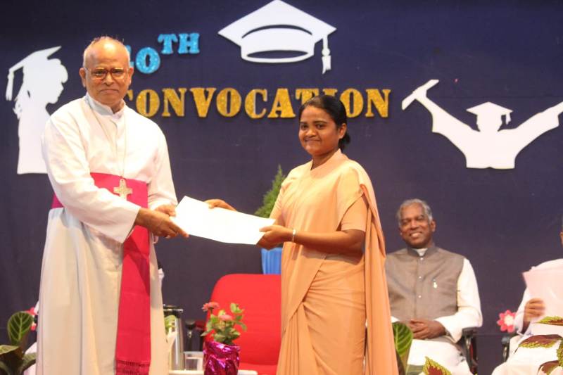 St. Peter’s Pontifical Institute’s 40th Convocation was held on 18th December 2019.The graduates who completed their B. Th (Bachelor of Theology) received their graduating certificates from the chief guest Most Rev. Singarayar (Bishop of Salem) We heartily congratulate Sr. Kumudini, Toppo, who completed her degree with distinction . We wish her All the Best for her future ministry!!
