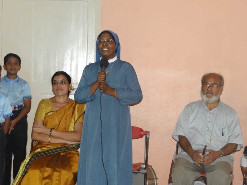 Sr.Mary Gracelet PDDM was invited by the Loyola School – Trivandram for a music workshop from 8th -11th March 2016. She was felicitated for her musical contribution through CD’s – LIturgical composition: ”Marvellous” and Patriotic songs: “Salute India”. The workshop was concluded with the Eucharistic celebration.During the celebration the students of Loyola School of the Jesuits danced for the Entrance,Resposorial Psalm,Offertory,and Recessional. The Hymns were taken from the CD “Marvellous”.