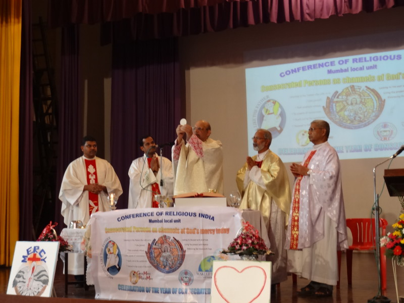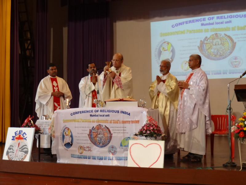 On 26th December 2015, the CRI of Mumbai (local unit) had a solemn conclusion of the Year of Consecrated Life. It began with the Holy Eucharist, presided by his eminence cardinal Oswald Gracias. In his homily he brought out the meaning of Mercy and connected it with our Consecrated life. The Mass was followed by a short cultural programme, which included the Christmas message, carol singing, and a dance on the theme Mercy, which was performed by Sr. Sushma. Through the dance she beautifully brought out how we approach the throne of God, in order to quench our thirst for Mercy.We the Sister Disciples were indeed honoured as the entire gathering applauded and appreciated her performance. The programme concluded with the final message by the Cardinal Oswald, in which he expressed his gratitude, for all the religious men and women of the diocese.