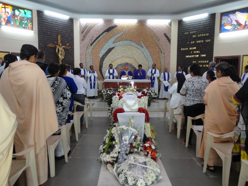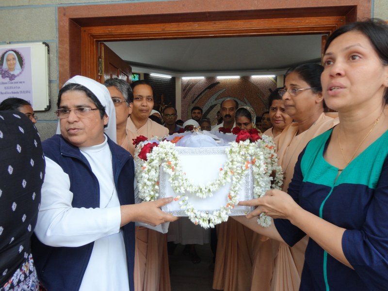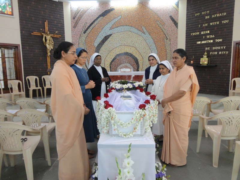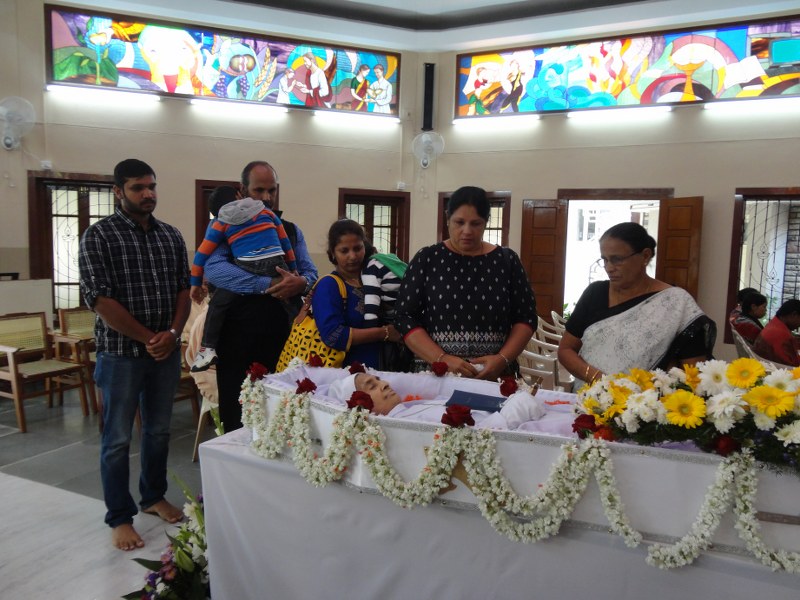 Three weeks ago she had to gone to Mangalore for a short home visit and was back to the community after four days. After which she was confined to bed with fever. On 25th January at midnight she complained of breathlessness and was rushed to St. Philomina’s hospital. She was diagnosed with pneumonia and was immediately admitted to ICU. On 2nd February at 4.00 am she surrendered herself in to the hands of God. let us pray earnestly for her soul that she may rest in peace.