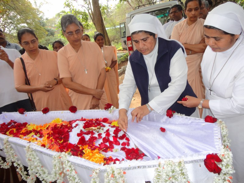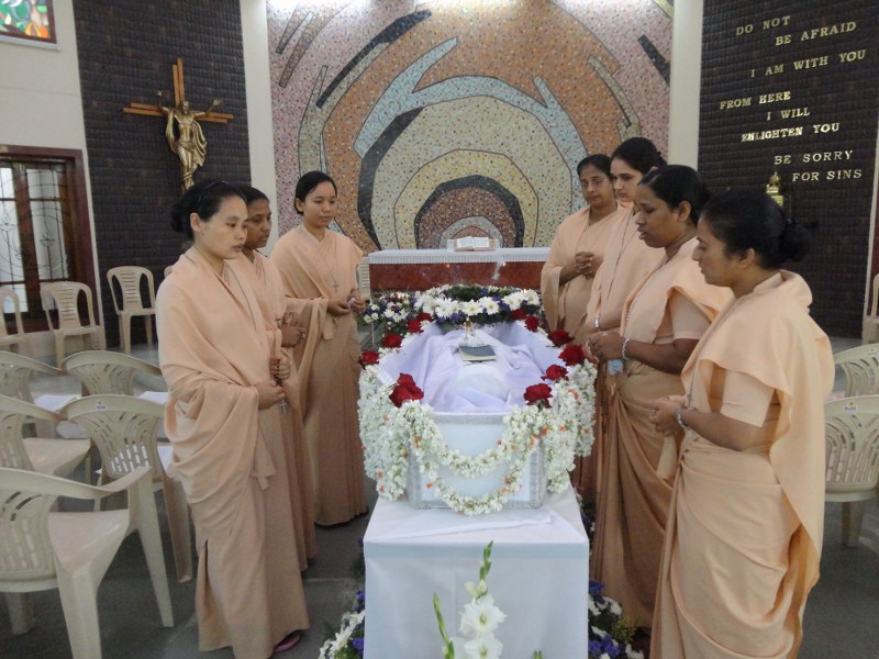 After returning to India she spent most of her life in this Community. For the Past 30 years she was suffering from rheumatoid arthritis and was constantly under medication. All through her life She suffered tremendously and was subjected to various treatments. She was known for her strong will power which enabled her to keep herself up till her death. She fought till the end and refused to give up her spirit of sacrifice. In spite of her pain and illness she did all her responsibilities that was entrusted to her with love and sincerity. She took active part in all the community activities including rising early in the morning which cost her a lot.