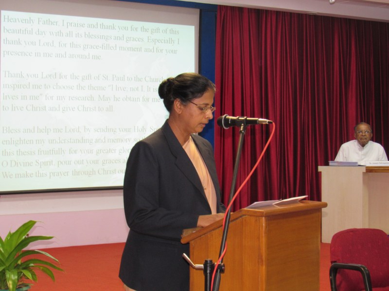 The faculty of Theology at Dharmaram Vidya Kshetram Pontifical Athenaeum of Philosophy, theology & Canon Law has declared the Doctoral degree for Sr. Paulcy Thelakkadan for her Dissertation on “I live, not I, It is christ Who lives in Me (Gal 2:20): A Study on Paul’s christ Experience from a Yogic Perspective” on 17th December 2015 in the Multimedia Hall DVK Central Library. The community of Guru Yesu Bhavan along with Large number of professors and research Scholars were present on the occasion Witnessed it with great joy. Provincial Superior Sr. Rose Mary Muthasseril expressed her gratitude on behalf of Indian Province and Congratulated Sr. Paulcy Thelakkadan for her successful Completion. PH.D Guide Prof. Dr. Joseph Pathrapankal, CMI and Dr. Joy Philip Kakkanattu, CMI Dean, Faculty of Theology Appreciated her for the original contribution to Indian Church which live and experience