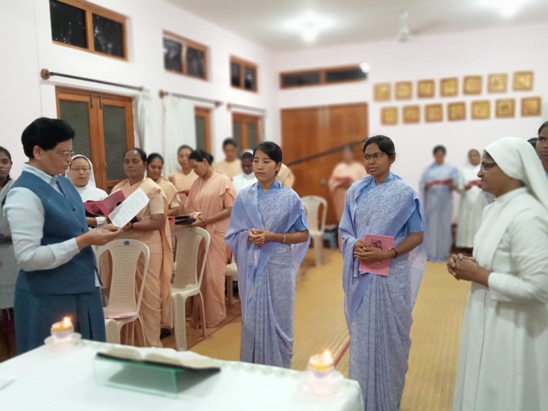 They were received into the Novitiate during the celebration of vespers in a meaningful rite conducted by the Provincial Superior Sr. M. Celine Cunha. The community of Orsola Bhavan, Mysore gladly witnessed this event. We wish them all the best for their journey into configuration with Christ the Master.