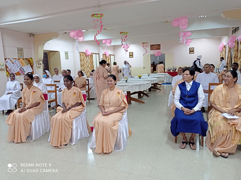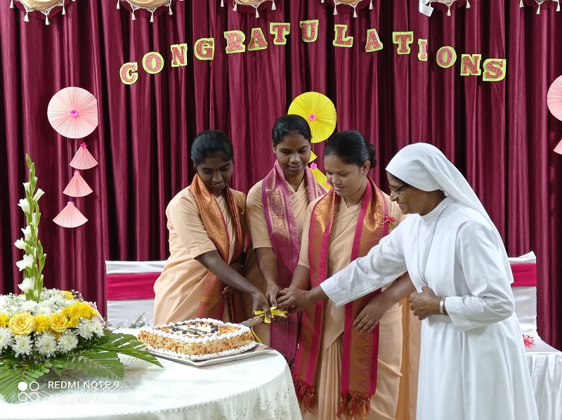 The solemn Eucharistic Celebration was presided over by Rev Fr. Eugene Lobo SJ. Rev Fr. Prashanth Madtha SJ in his homily enlightening the newly professed with the meaning of the vows said, by taking religious vows we are left with only one choice – the choice of the Divine Master. Poverty is choosing the periphery and being comfortable with it. Chasity is investing oneself in the poor in whom there is the density of God’s presence. Obedience is being comfortable with whatever happens in one’s life, believing that it is the best thing that can ever happen.