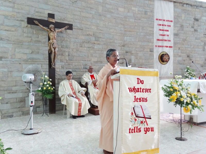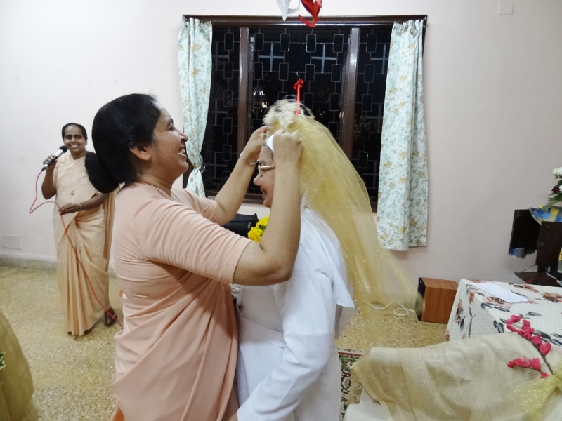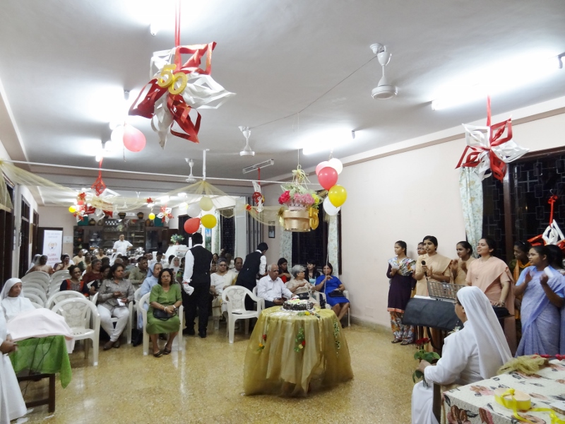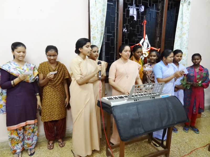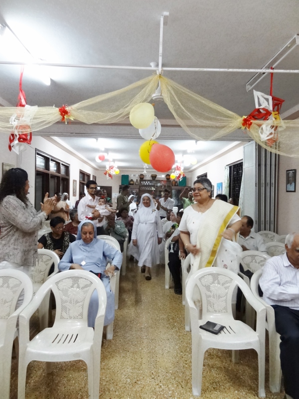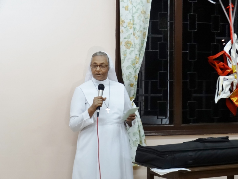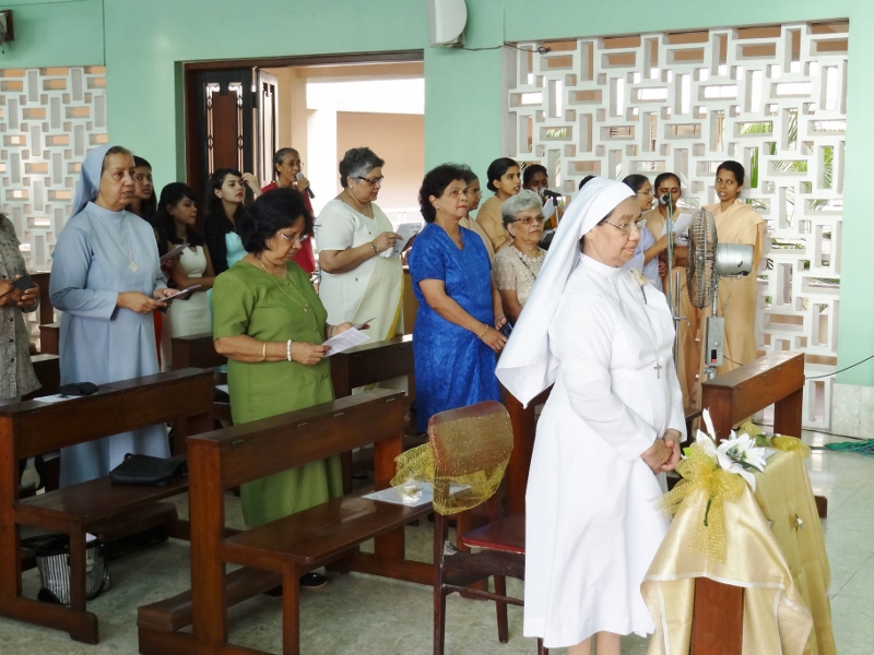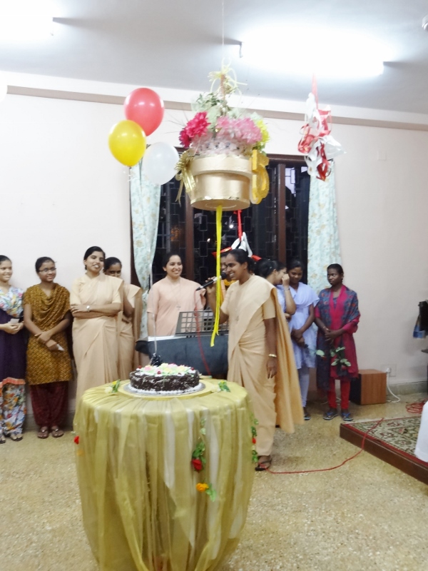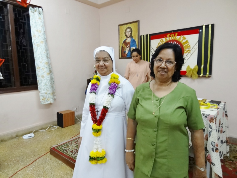 On 24th May, 2016, the Indian Province celebrated the Golden Jubilee celebration of Sr. Eloisa Menezes at Prarthanalaya, Community of Mumbai [the home town of Sr. Eloisa]. The Eucharsit began at 6.00 pm and was presided over by Rev. Fr. Clarence, the cousin brother of Sr. Eloisa. Fr. Jervis and Fr. Ashlyn who were also her cousin priests concelebrated the Eucharist. The occasion was hosted with the family and friends of Sr. Eloisa. On behalf of Sr. Rosemary the Provincial Superior, the Community Superior honoured and acknowledged the dedicated service of Sr. Eloisa by organising this solemn program. The Eucharist was followed by a felicitation program and a fellowship meal. May Jesus the Divine Master bless Sr. Eloisa with good health of mind, body and spirit as she continue with greater enthusiasm in her mission.