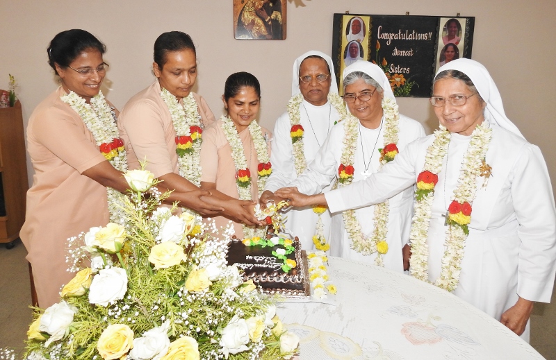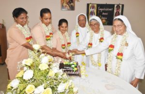On 25th March, 2017 Sr Caritas Cunha, Sr Fides Enos and Sr Speranza Cornelio, celebrated the Golden Jubilee of their Religious profession and Sr Mary Pinto, Sr Paulcy Thelakkadan and Sr Nancy Crasta celebrated the Silver Jubilee of their Religious profession, at Guru Yesu Bhavan, Bangalore.