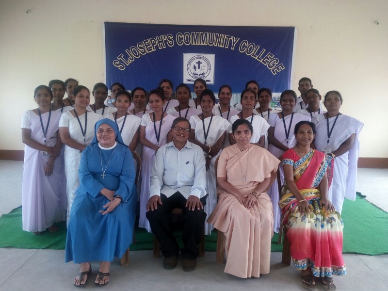 On 30th of October St. Joseph’s Community college had its Lamp Lightening Ceremony of the 9th batch. Fr. James Bara S.J was the Chief Guest for the occasion. The program began with singing a Bhajan invoking God’s blessings on the students as they were invited to light their lamps from the Kuttu Vilakku. Then the students along with the lighted lamps took the Florence nightingales pledge. It enables them to show themselves worthy and ready to work and serve in the hospital.