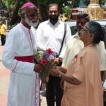 After the Eucharistic celebration, there was a concise program in which the Archbishop, Vicar general, and parish priest of Sacred Heart Basilica Rev. Fr. Pitchaimuthu, and the special guests, were honored with a centenary memento. The Parish priest and a senior parishioner who had known us from our arrival in Pondicherry shared their views about our presence in Sacred Heart Basilica. The celebration came to an end with the sharing of a festive meal.