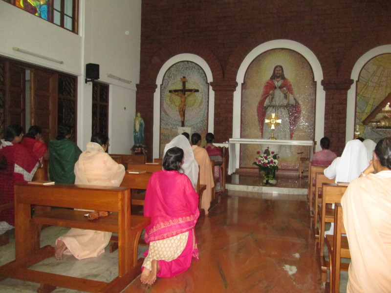 The Rabboni Intercessory Prayer group of the PDDM Sisters at Calicut began on Friday, July 12, 2015 in our convent chapel with the participation of the laity. Hence forth every Friday we carry on this Intercessory mission. The people are very enthusiastic about joining us and praying for the various needs of the Church and the suffering brothers and sisters. Many people experience and testify to God’s loving hand, as they come to adore the Lord in this chapel.
