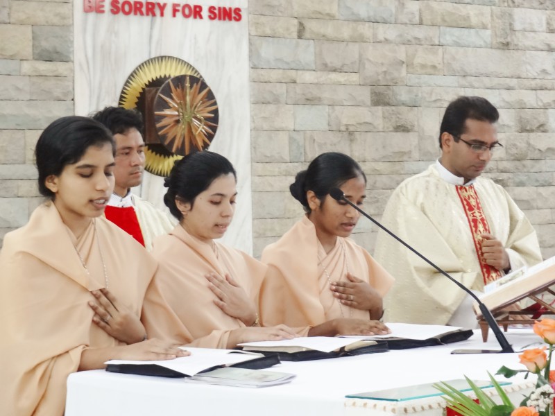 On 9th of February, the Juniors of the Indian province renewed their vows. In Mumbai three of the Juniors, Srs. Lilly, Doly and Jenipher renewed their vows during the 6:30 am Mass, which was presided by Rev. Fr. Jefferey, SSP a newly ordained priest, and Fr. Shaiju, Director of SPICE. During the homily, he beautifully brought out the role of Sister Disciples, in the Church and in the Pauline Family. The celebration indeed filled the atmosphere with blessings of happiness. We wish all the Juniors a joyous and a committed journey with the Divine Master.