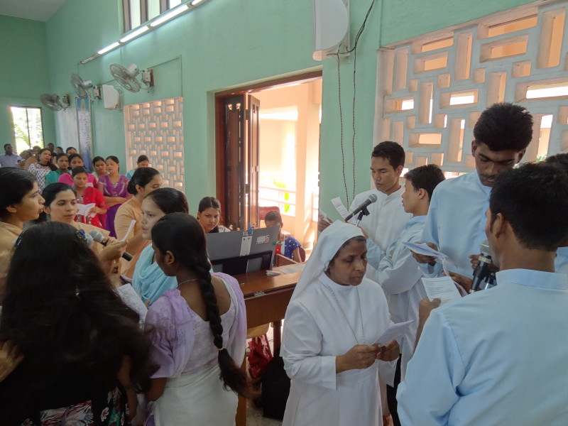 The Solemn Eucharist was presided over by Rev. Fr. Devasia Pudiyaparambil SSP, the vice Provincial of the Society of St. Paul and concelebrated by Paulines and other priests. After the Gospel Proclamation, the five new members were introduced by Sr. Patricia Fernandez, Pddm. The new members came forward and made their promise to become the Friends of Jesus Master. May the Divine Master assist them to become more and more truly His own Friends. After their promise the existing members of the Association too came forward to make their renewal. They were around 30 of them. All Glory to God the Father and to Jesus Divine Master for the presence of the Friends of the Jesus Master in the Indian Province.