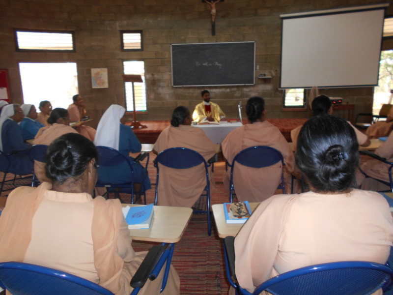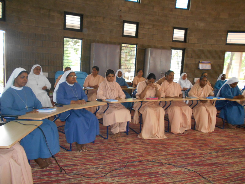 Asirvanam, the Benedictine retreat centre is one of the oldest retreat centres in Bangalore. The serene and tranquil atmosphere of the monastery and its surroundings leaves a lasting impression, prompting one to become aware of the deeper values of life. It is in such an oasis of peace, that thirty seven of us from 17 communities participated in a ‘Spiritual Growth Retreat’. The theme for the retreat was “My Consecrated Life, a channel of God’s Mercy” which was guided by Fr. Bobbin a Camillian Priest.