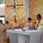 The Celebration was presided over by Rev. Fr Robert Correa, the Superior of the Society of St. Paul, Bangalore, and the concelebrants were Fr Marius Gangmei a relative of Sr Rosita Gangmei and the Jesuit priests from the neighbouring house. Fr. Robert Correa in his homily appreciating the Novices for their courage to embrace religious life which is a rarity in these modern times quoted from Pope Francis “Religious life is God’s gratuitous gift. We need to have the ability to recognize Jesus, to see “what really matters in life”. It begins with “knowing how to see grace”, especially by seeing how God works in our lives, “not only in life’s grand moments but also in our fragility and weakness”.